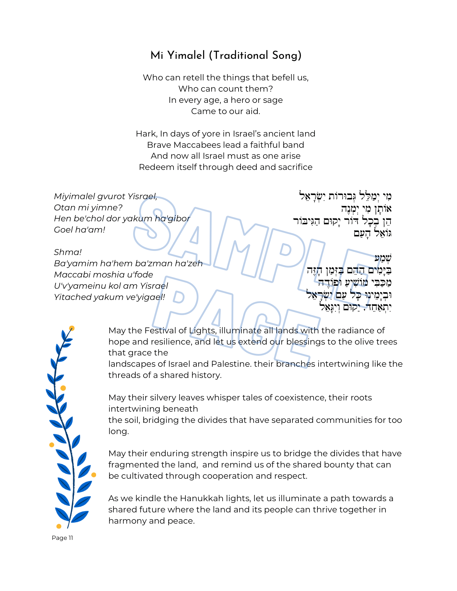 This Hanukkah Haggadah features four stories associated with Hanukkah and has four "courses" related to those stories: fish or soup, olive oil, root vegetables, and cheese.