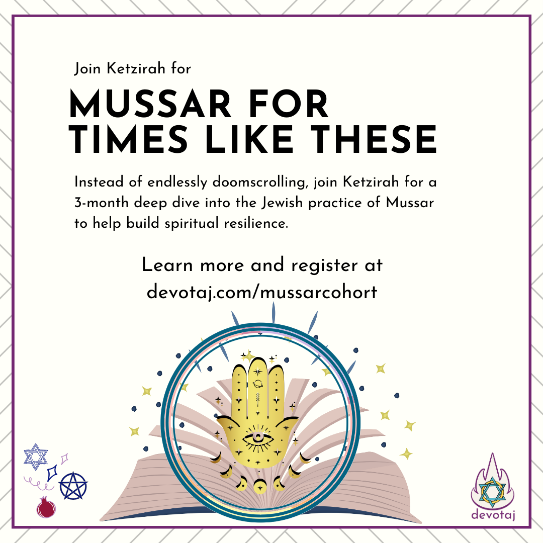 Join Ketzirah for a 3-month deep dive into the practice of Mussar to help build resilience for times like these, and those, and the ones that come after that designed for Jewish witches and witchy Jews (and those who are witch-curious too).