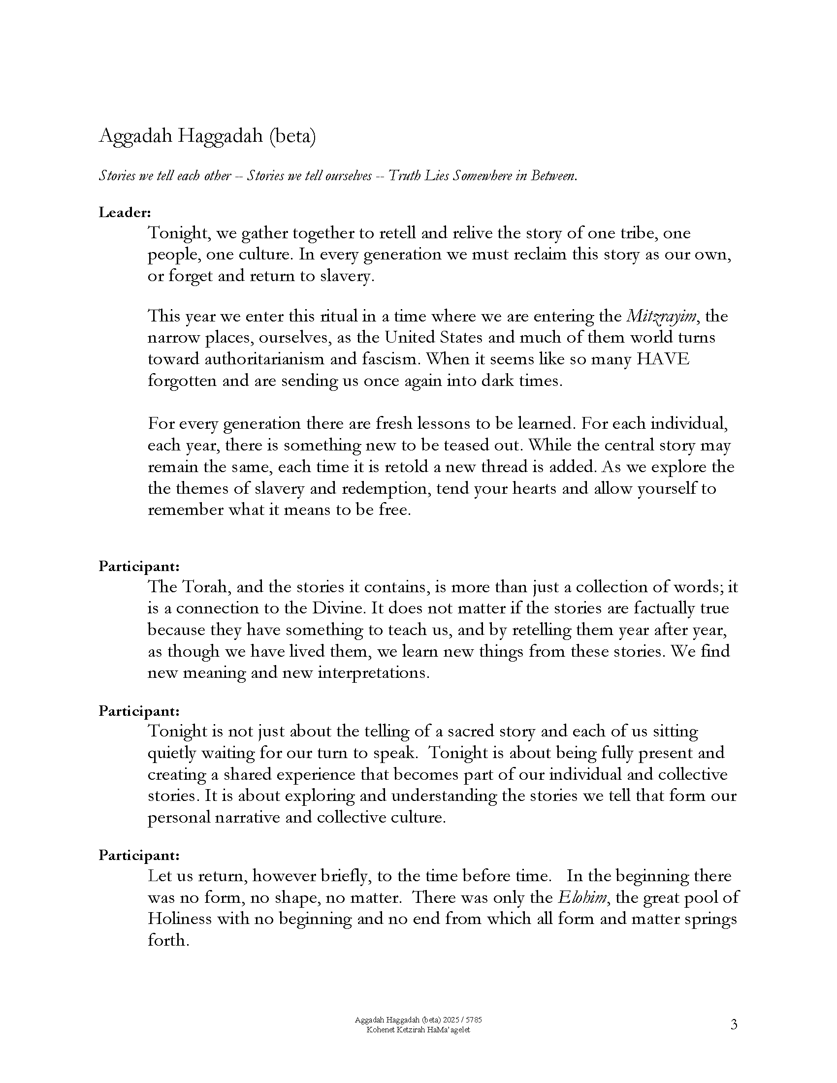 The Aggadah Haggadah by Kohenet Ketzirah haMa’agelet: the eternally transforming haggadah that takes many of the most popular elements of my original haggadah, and focuses on the stories we tell each other, the stories we tell ourselves and the truth that lies somewhere in between.
