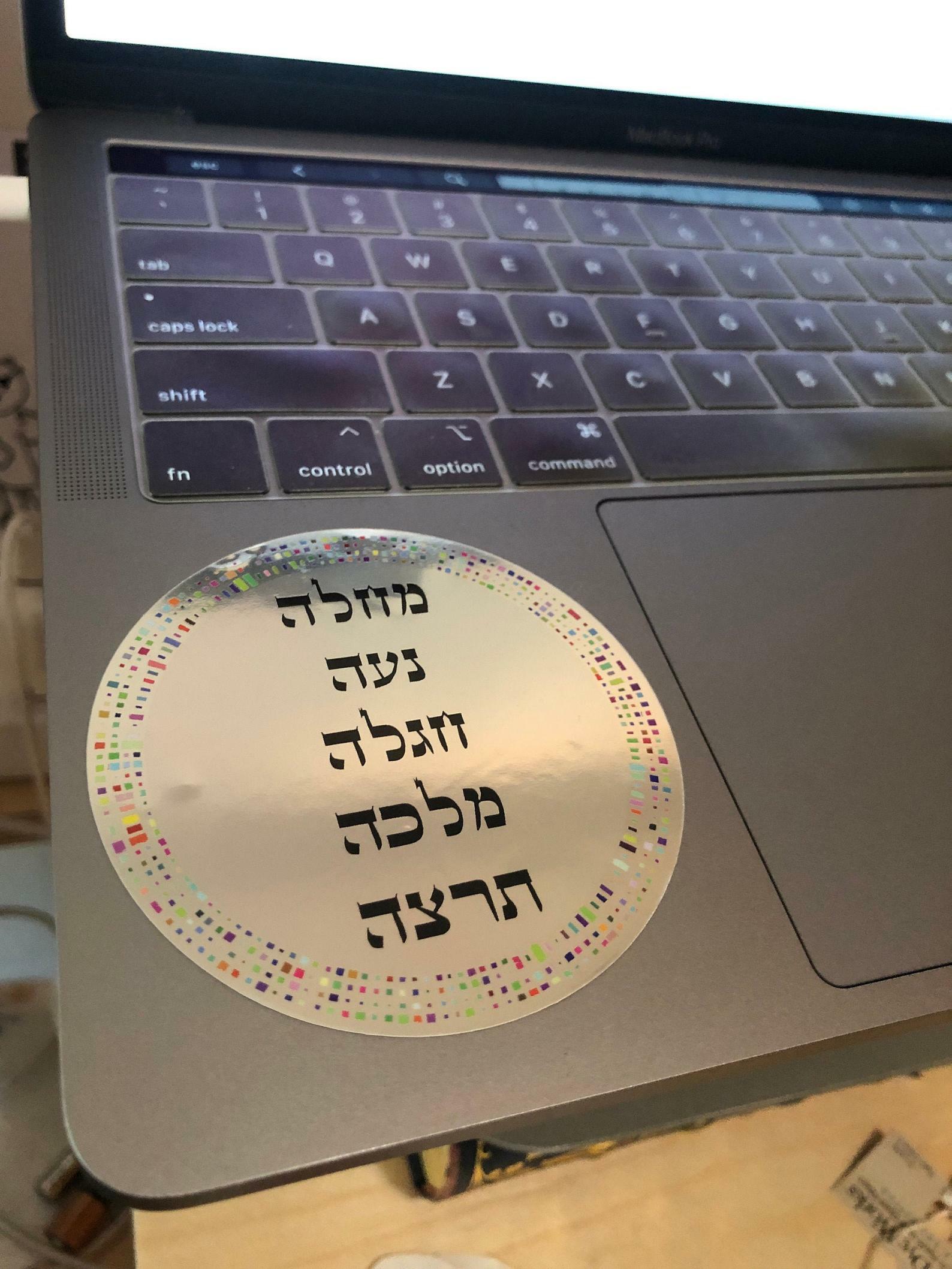 The Hebrew on the sticker features the names of the Daughters of Tzelophechad to reflect their courage back to you: