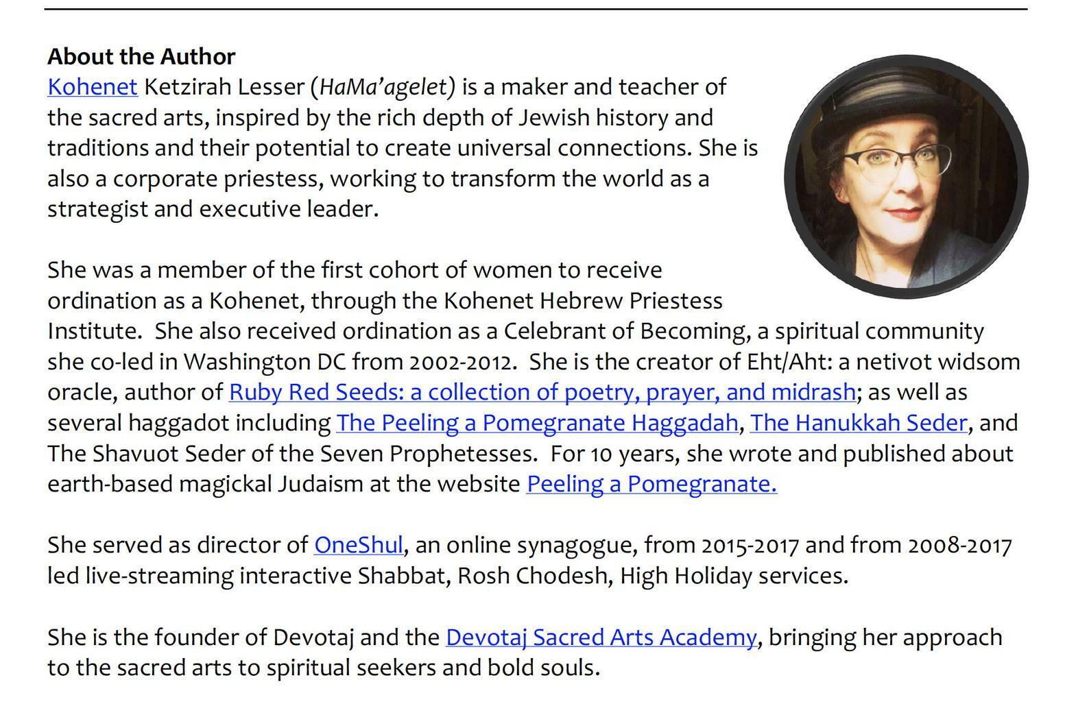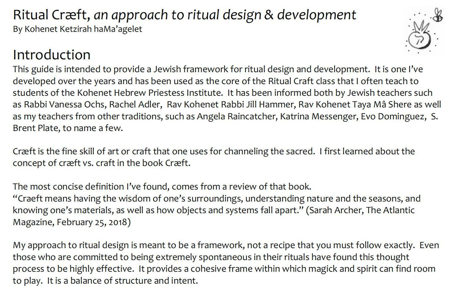 It is one I’ve developed over the years and has been used as the core of the Ritual Craft class that I often teach to students of the Kohenet Hebrew Priestess Institute.