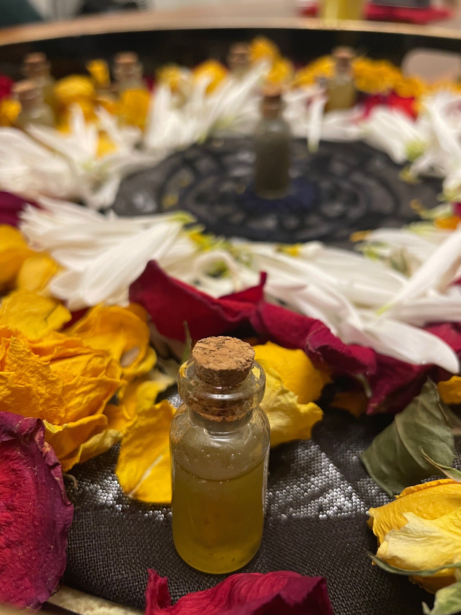 We bottled that magiq, so needed right now, into an oil. We created one for each of us, one to give back to the depths, and 10 to share with all of you.