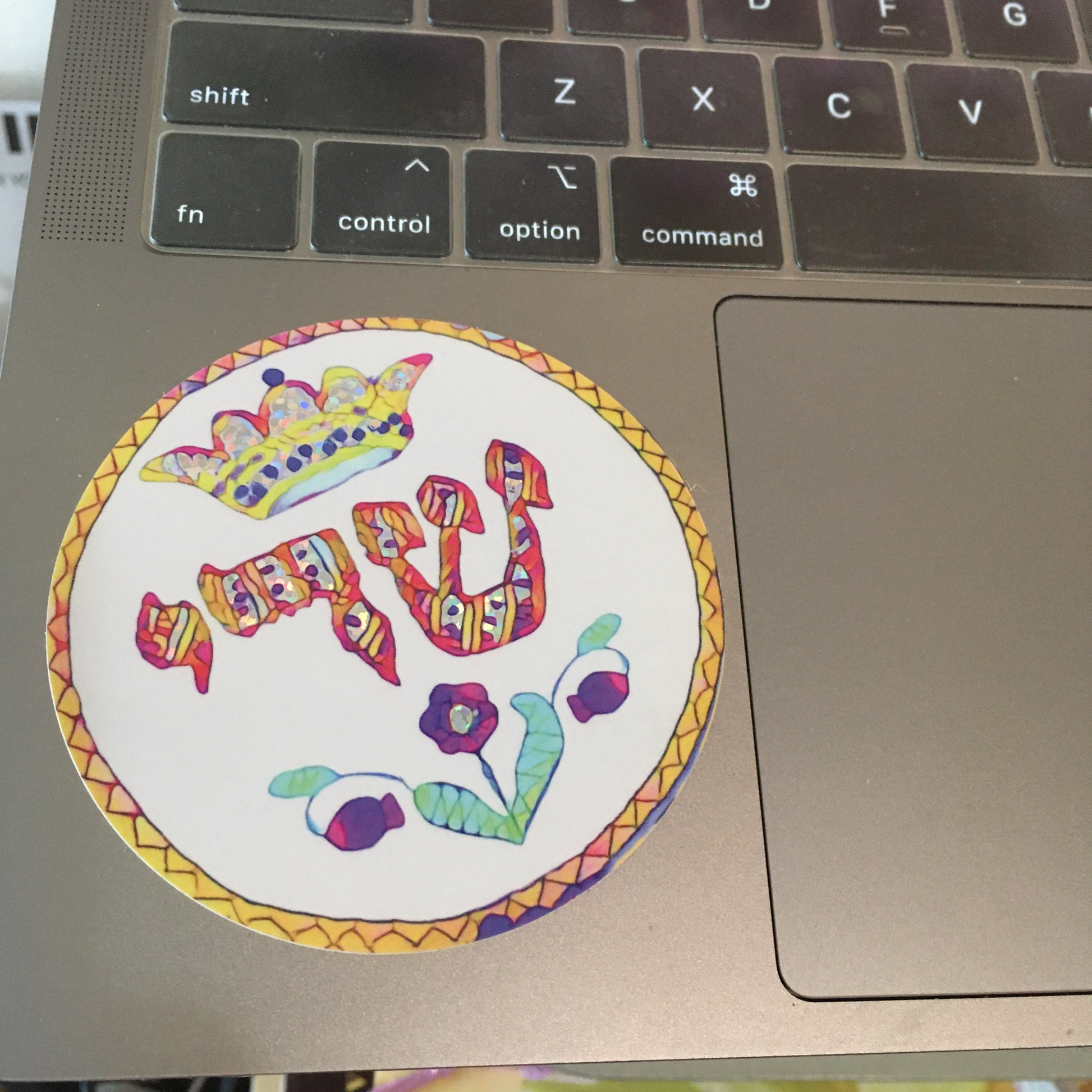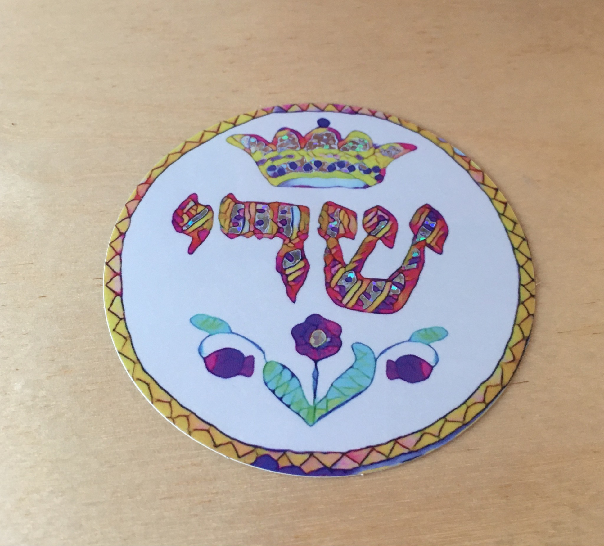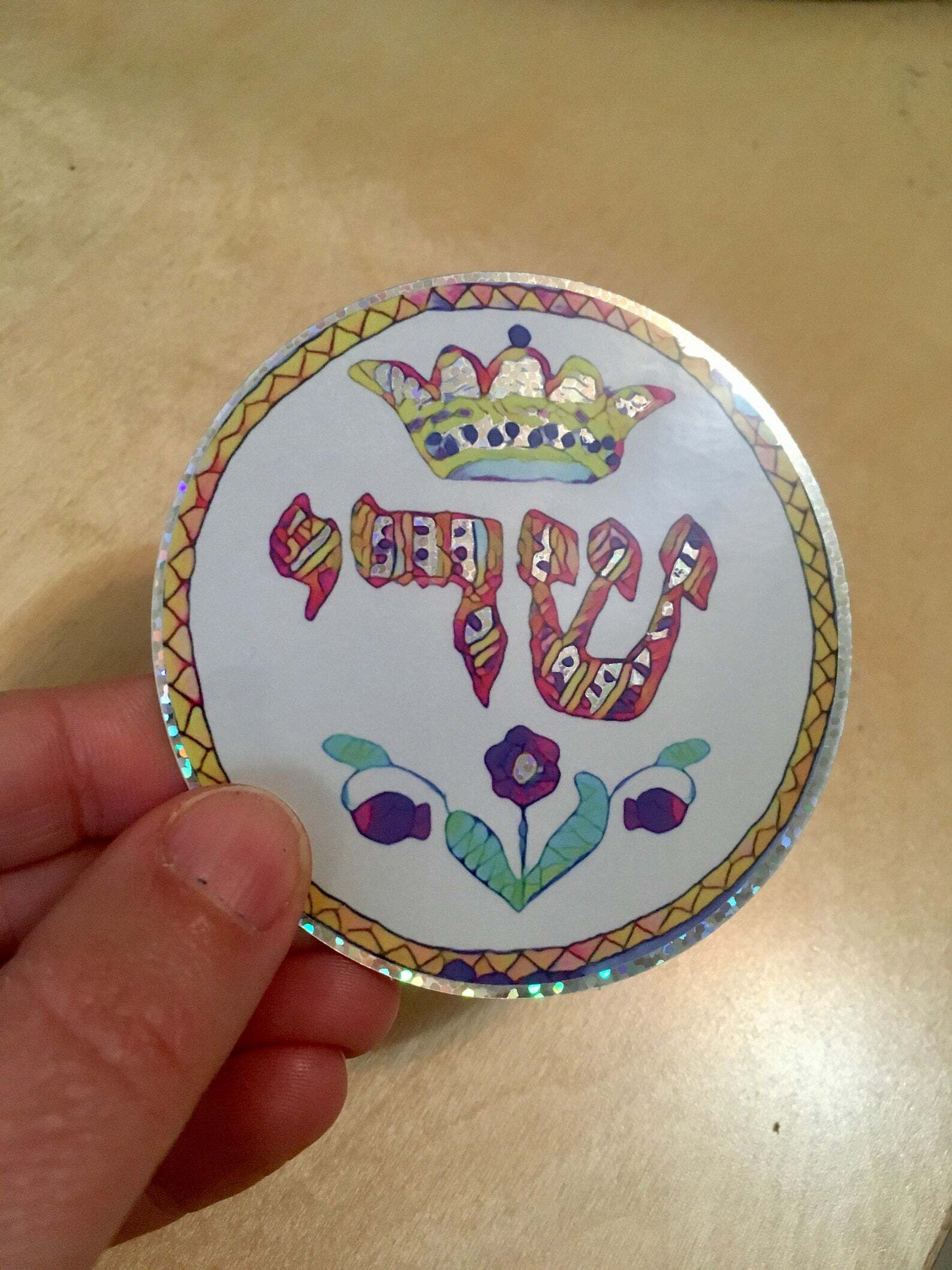 Shaddai is a name for the Divine in Jewish tradition that is associated with nurturing and is used commonly in birth amulets and on mezuzahs. The name is connect to the word for "breast" in Hebrew, and is said to be a Hebrew acronym for "Guardian of the Doorways of Yisrael." The sticker has just a touch of glitter details to make it shine.