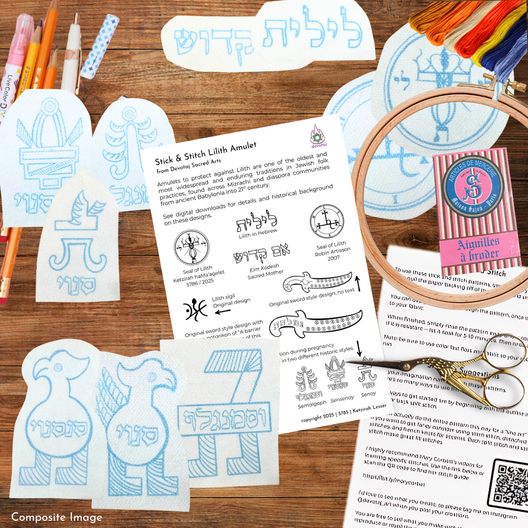 Lilith Amulet Embroidery Patterns | Stick & Stitch | for Jewish Witches & Witchy Jews